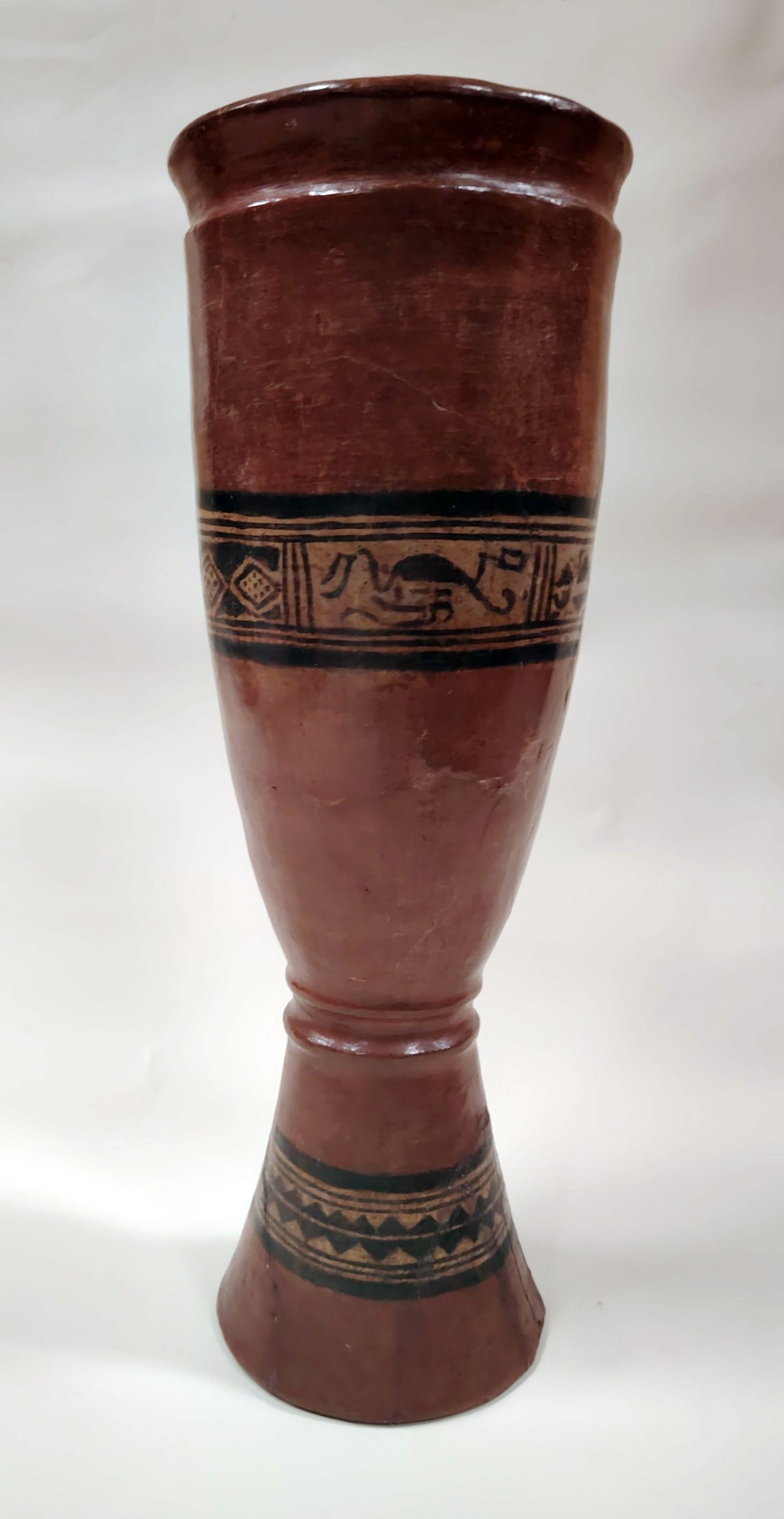 De los tambores antiguos del Diquís, en la actualidad se conserva el cuerpo de cerámica similar a un reloj de arena, donde la parte superior es más grande que la inferior. Probablemente siglos atrás se utilizó la piel de un reptil o de un mamífero como parche amarrado en la acanaladura de la parte superior y tensado con tiras o cuerdas de fibras vegetales o tendones. Debido a las condiciones ambientales de nuestro país, la parte orgánica de los tambores no se conserva y solo nos queda el cuerpo o caja de resonancia; sin embargo, existen ocarinas con forma de tambor que representan estas membranas.