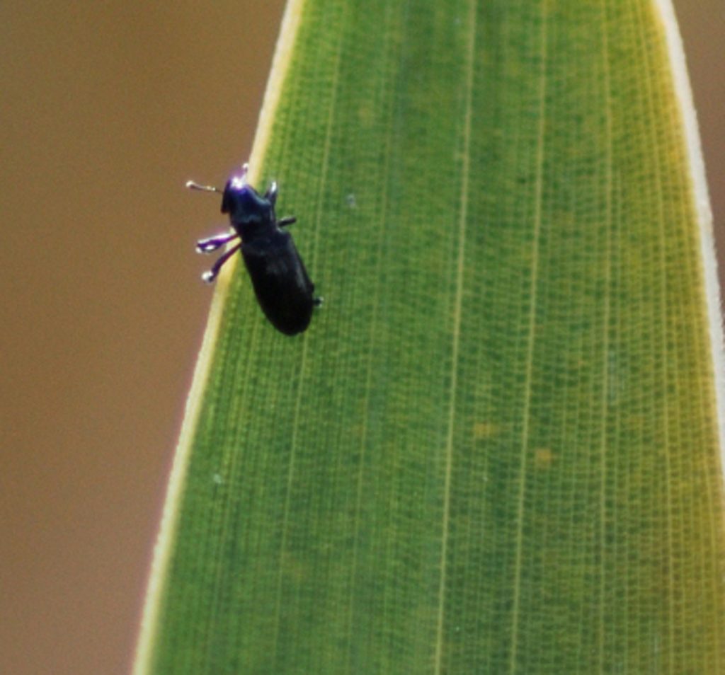 Escarabajo (Fam. Curculionidae) sobre gramínea. Fotografía: M. Cambronero. MNCR
