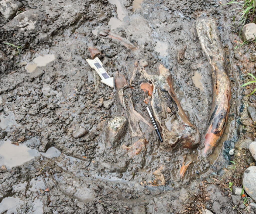 Los restos fósiles del mastodonte se ubican en el cauce del río Aguacaliente, a escasos 50 cm del nivel del agua, que se mantuvo relativamente estable durante el periodo de excavación (enero–marzo de 2026).